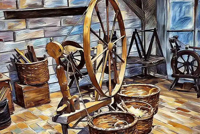 Le rouet est apparu bien plus tard : il est probablement apparu en Inde et dans le monde arabe entre le XIe et le XIIIe siècle et s'est répandu en Europe par les voies commerciales. Cela a considérablement amélioré l'efficacité du filage et il est resté un artisanat essentiel jusqu'à la révolution industrielle. Aujourd'hui, il connaît un regain d'intérêt en tant que loisir créatif et expression de la tradition et de la pleine conscience.